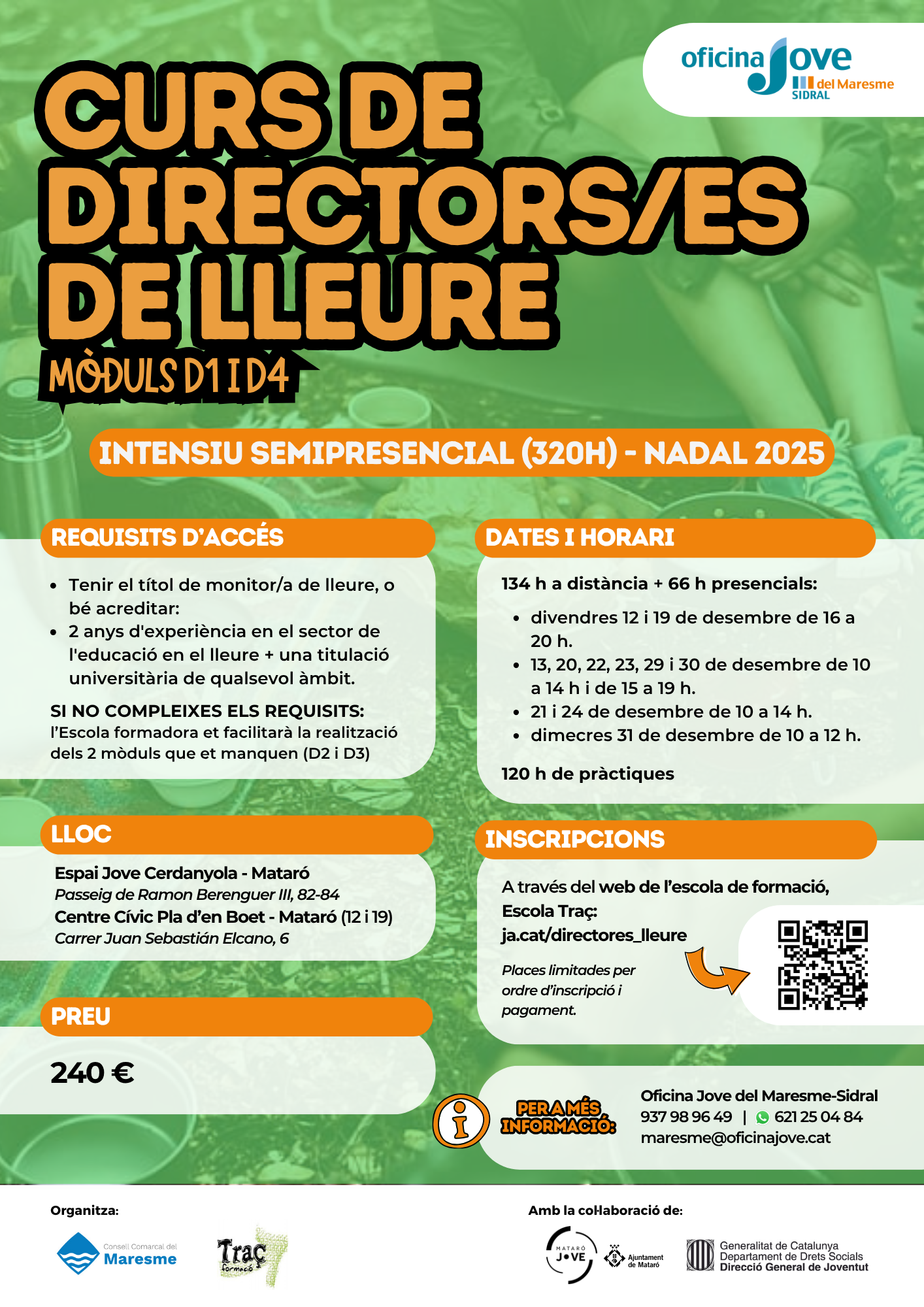 Titulació que s’obté: Per tal d’obtenir el diploma i carnet de Direcció i coordinació d’activitats de lleure educatiu infantil i juvenil, que expedeix la Direcció General de Joventut de la Generalitat de Catalunya, caldrà que l’alumne: